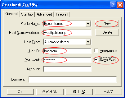 「User ID」、「Password」を入力し、「Save Pwd」にチェックをします。